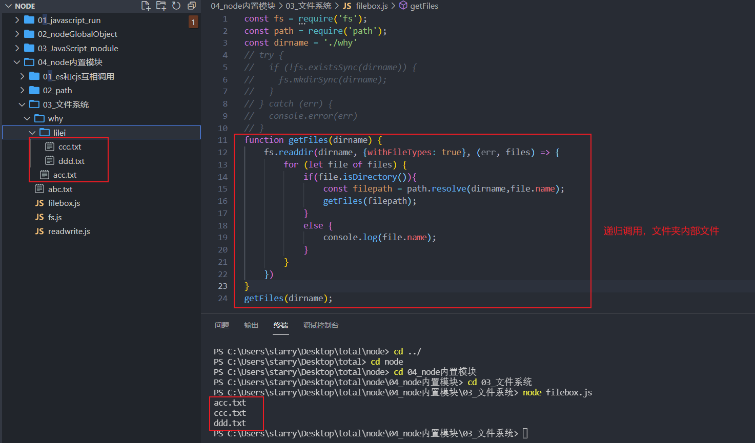 PS C:\Users\starry\Desktop\total\node\04_node内置模块\02_path> node 01_路径的演练.js C:\Users\starry\Desktop\total\node\04_node内置模块\02_path\User\why\abc.txt